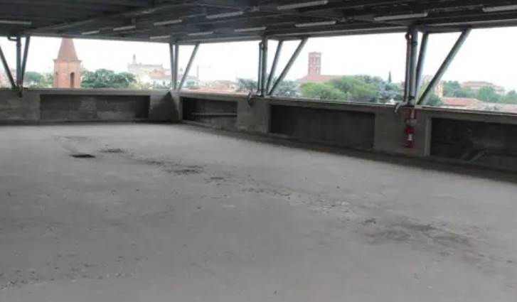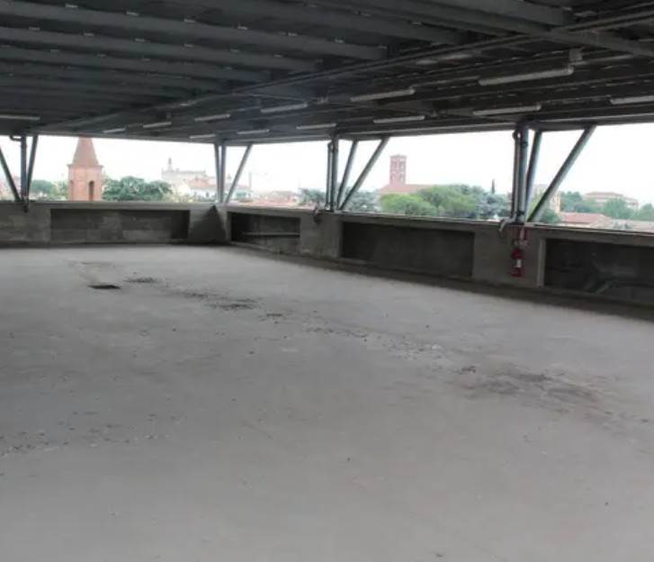 24 posti auto coperti a prato (po), via curtatone 69, angolo via oberdan 2. zona centrale con servizi. piano quinto di copertura di autosilo. superficie commerciale di 298 mq (12,40 mq cad circa). rampe carrabili chiuse da sbarre e scale di sicurezza. segnaletica orizzontale con numerazione. copertura metallica da ripristinare. agibilità rilasciata. condizioni buone.