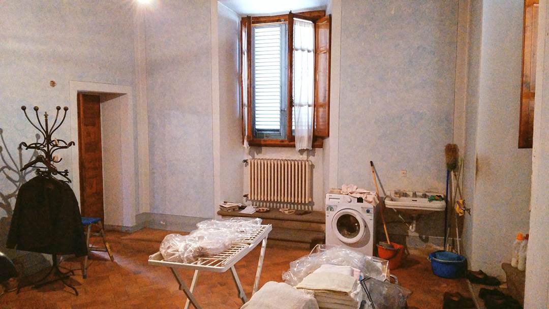 Appartamento ad uso di civile abitazione situato al piano primo costituita da vano soggiorno, sala da pranzo, vano cucina, locale studio, tre camere, un locale bagno corredato di antibagno, un locale wc ed una terrazza prospicente sul cortile interno e su Via Concino Concini. Il tutto per una superficie lorda complessiva di circa 230 mq.