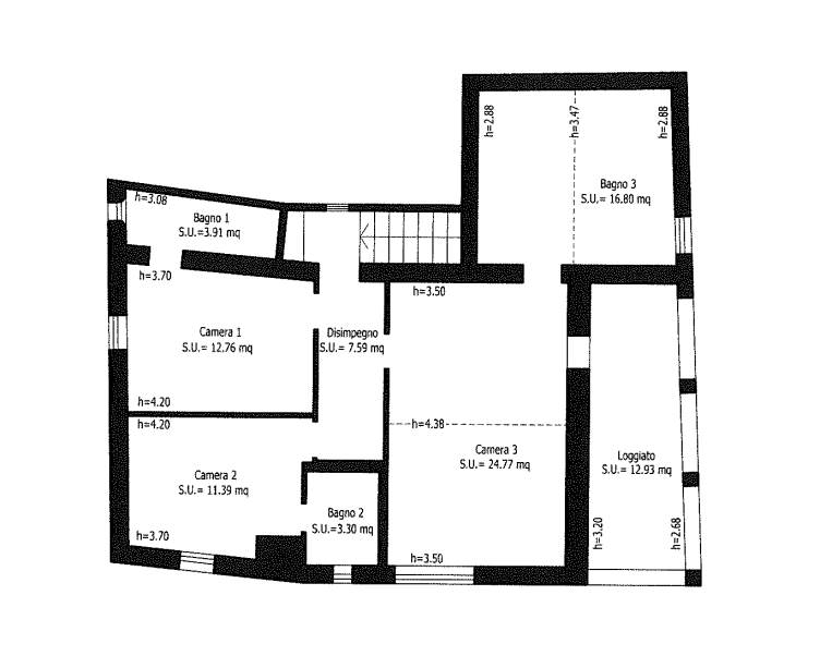 - Al piano primo cui si accede con scala intera che diparte dal piano terra, ingresso, pranzo, cucina, ampio soggiorno con balcone, disimpegno notte, doppi servizi, tre camere;