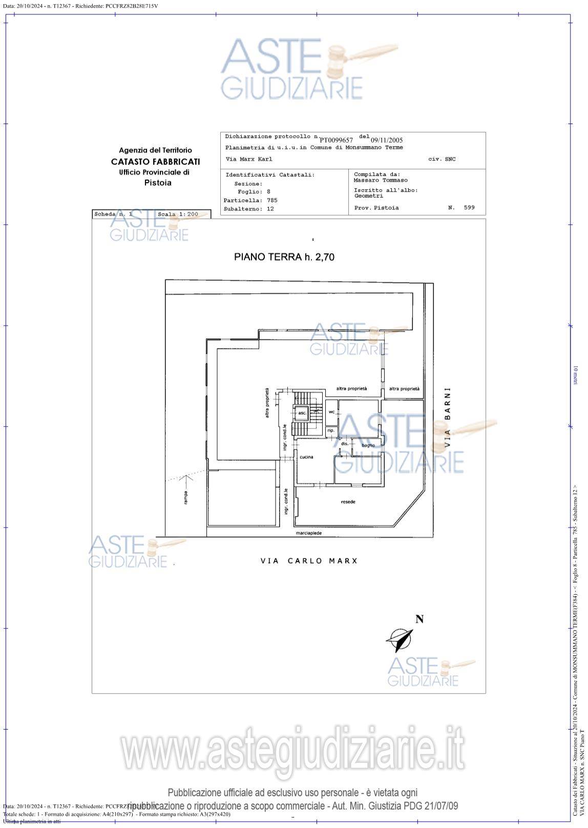 In asta a Monsummano un appartamento per civile abitazione posto a piano terra lato nord-est-sud del fabbricato al quale si accede attraverso parti condominiali e composto da: