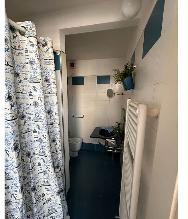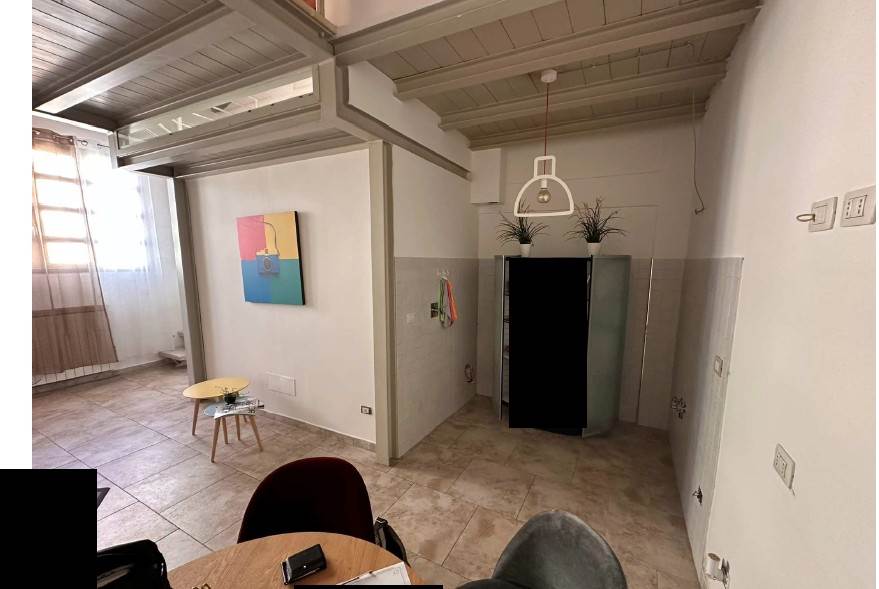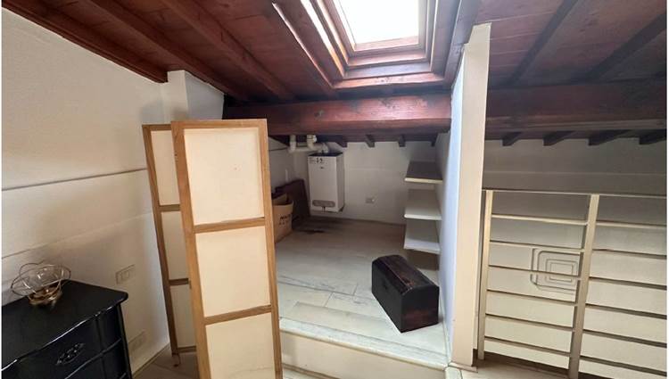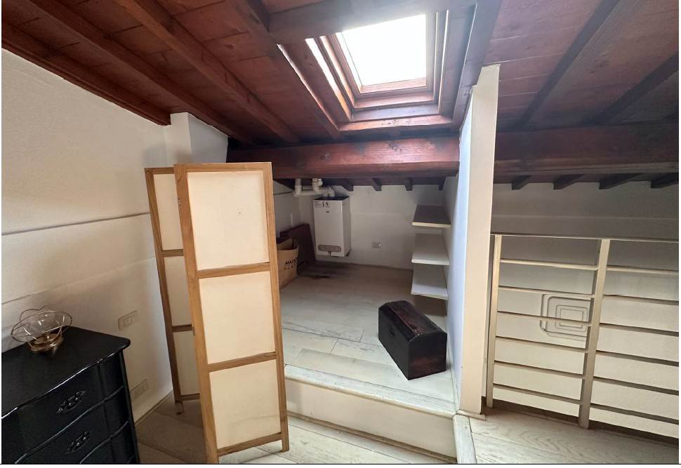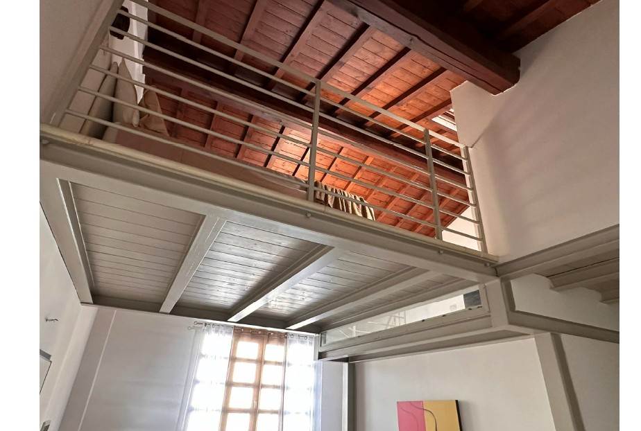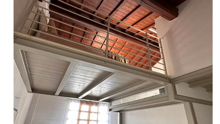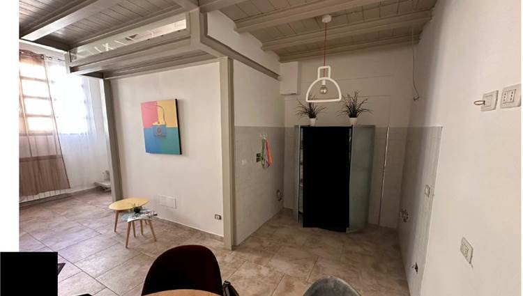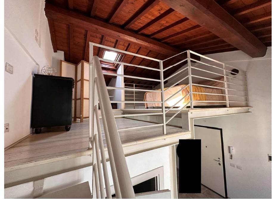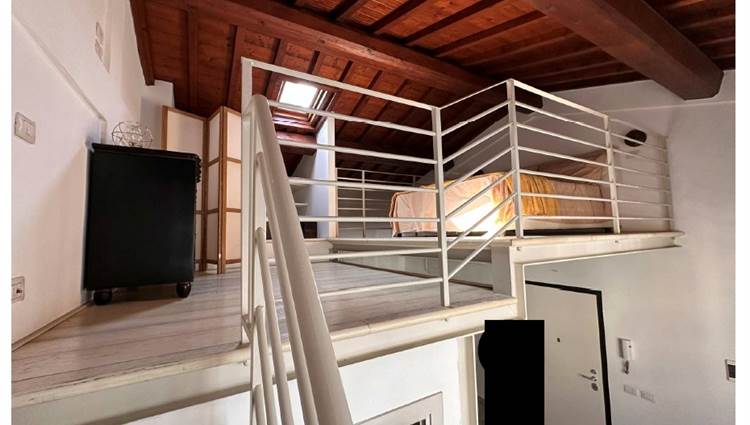 In asta un' unità immobiliare generata dal frazionamento di un ampio fabbricato e composta da un unico vano giorno con angolo cottura oltre a servizio igienico posizionato in corrispondenza da un soppalco in acciaio al quale si accede tramite scala in legno auto portante destinato a camera da letto con piccolo vano guardaroba.